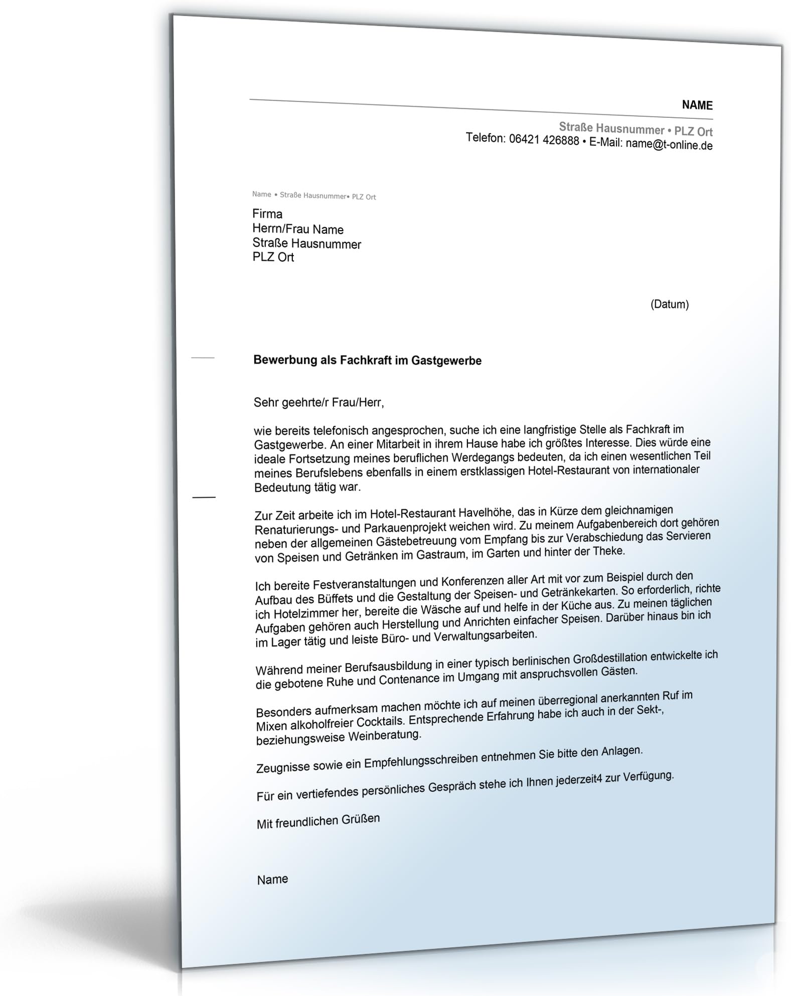 Hier haben wir 3 vorlage anschreiben bereitgestellt. Ein überzeugendes anschreiben ist das highlight der bewerbung. Neben der planung von allgemeinen abläufen im hotel kümmern sich hotelfachleute in erster linie um das wohl der gäste. Bereits die headline soll den künftigen arbeitgeber fesseln und dazu animieren das bewerbungsschreiben zu lesen.